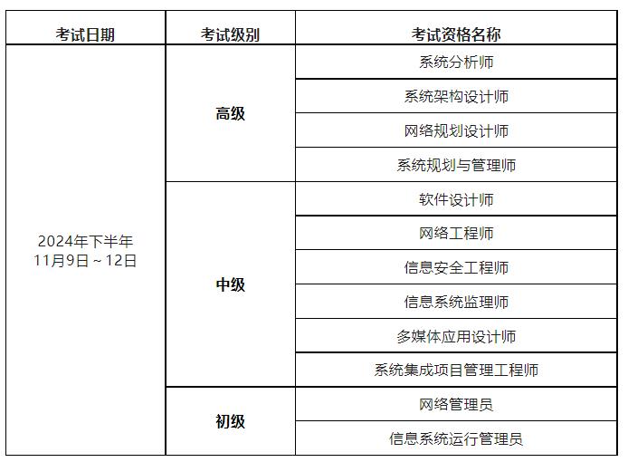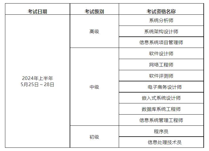 2024年度计算机技术与软件专业技术资格(水平)考试安排